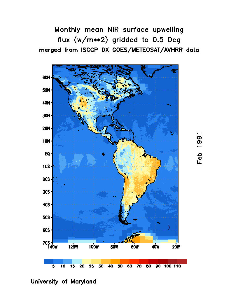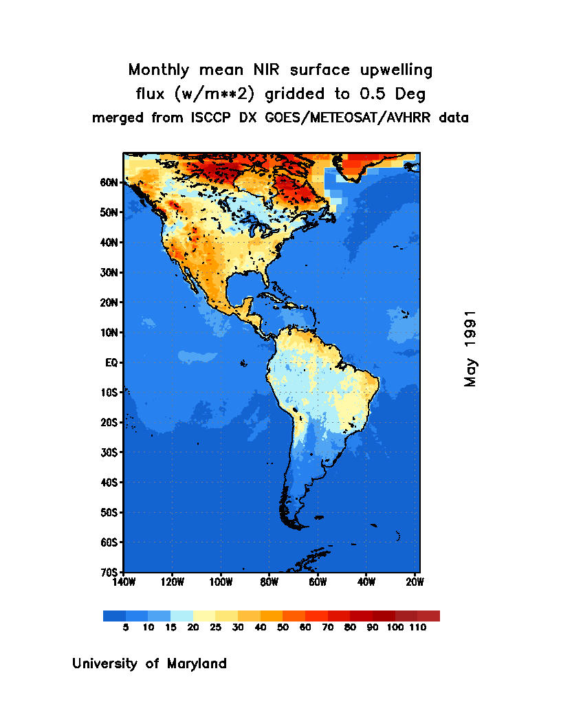 Monthly Mean NIR Surface Upward Flux (Wm-2)