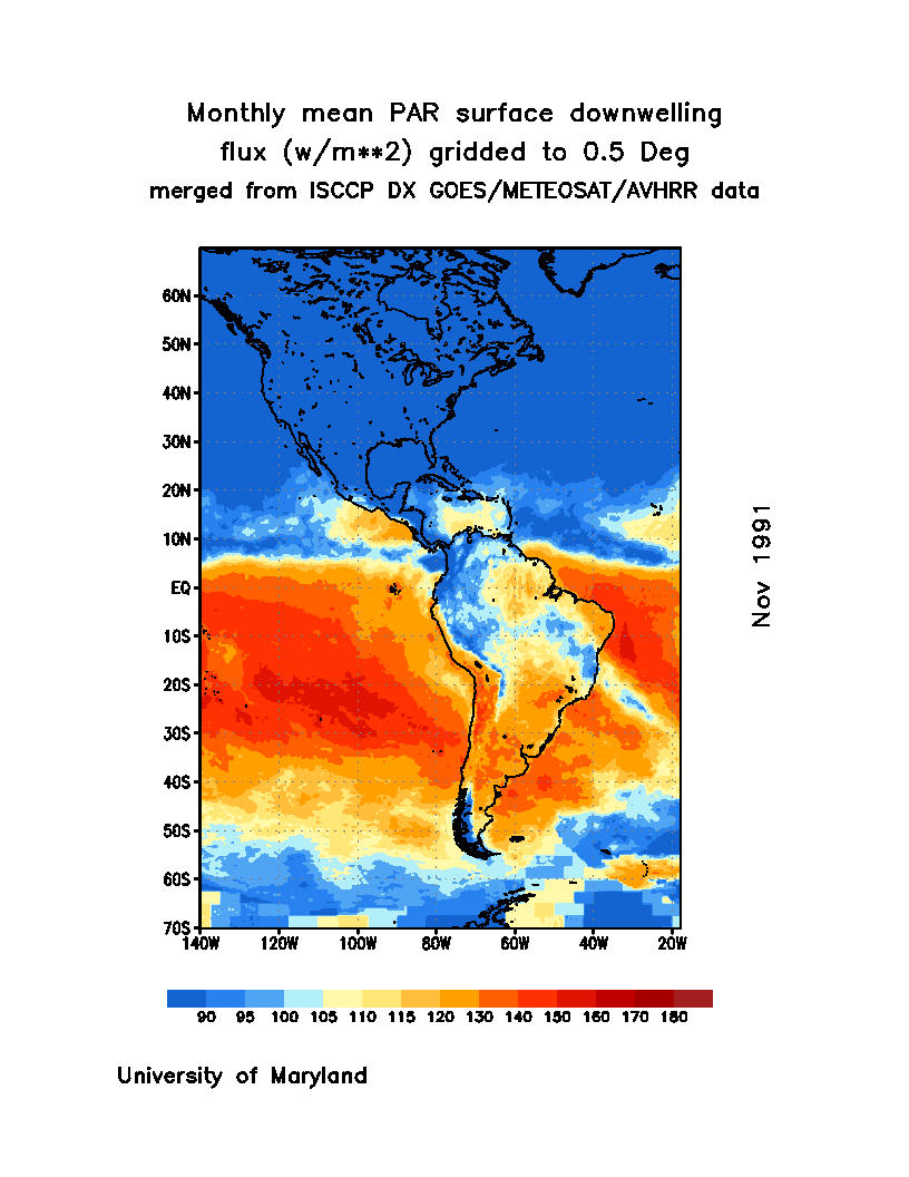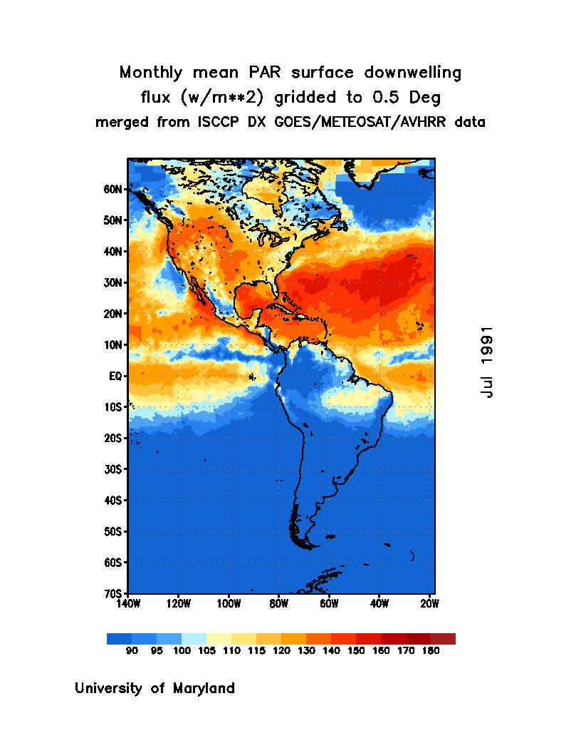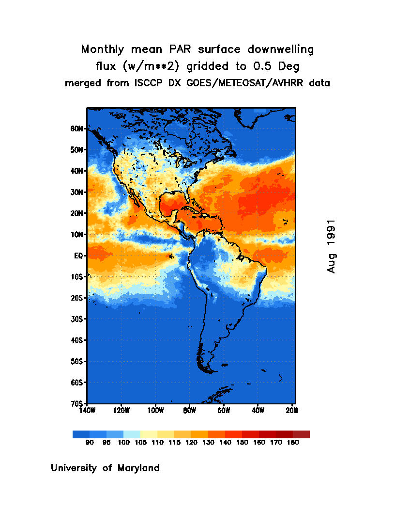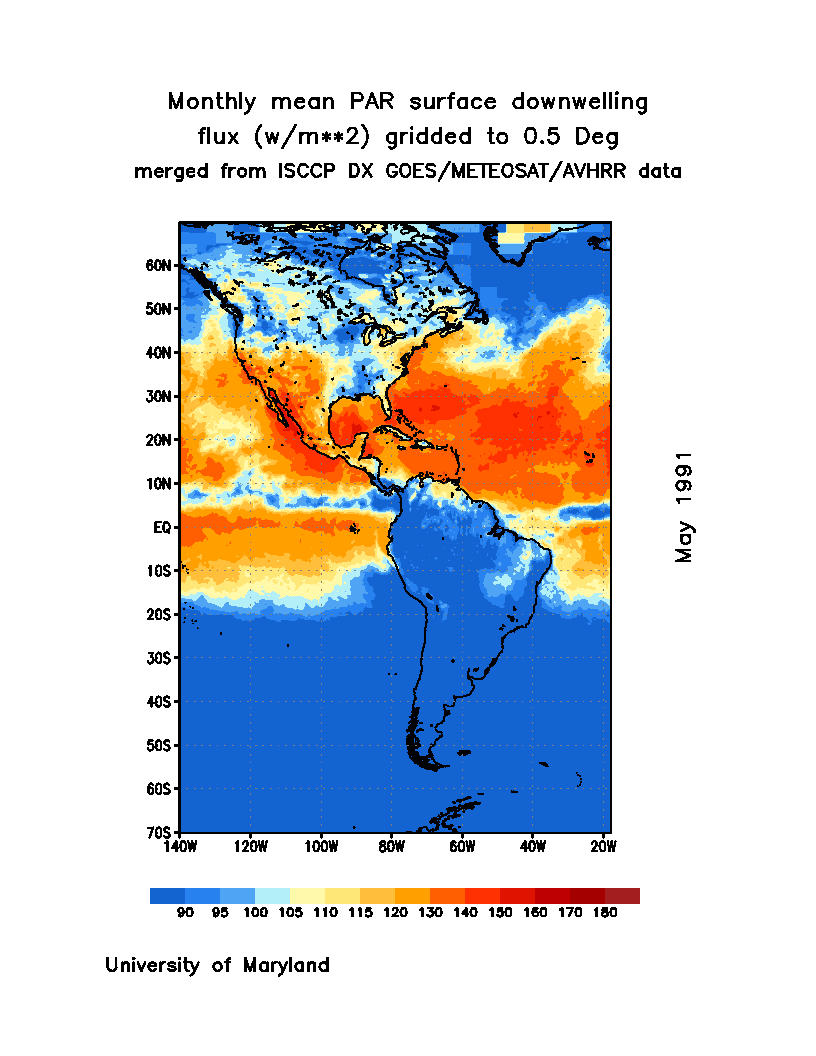 Monthly Mean PAR Surface Downward Flux (Wm-2)