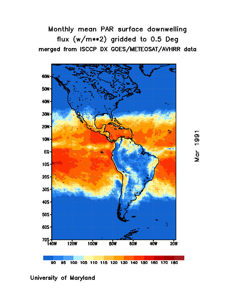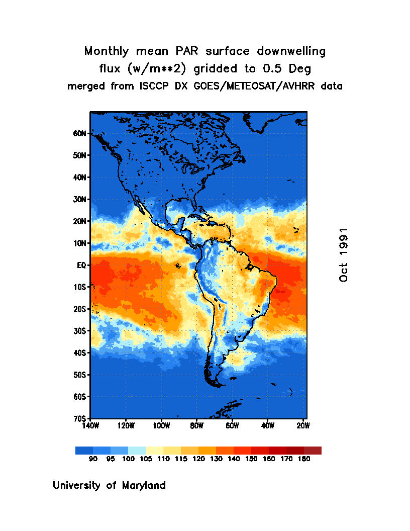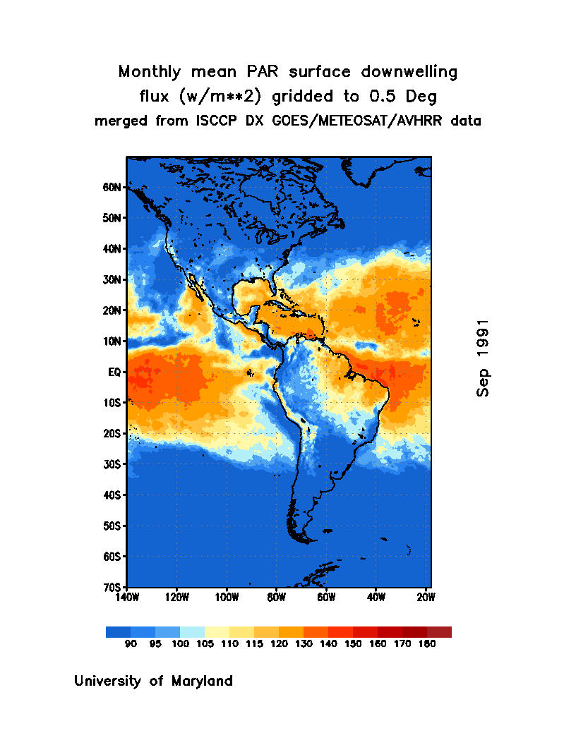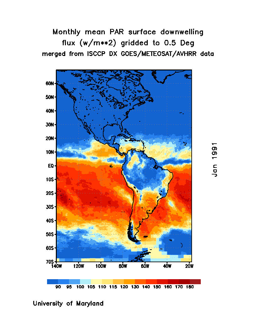 Monthly Mean PAR Surface Downward Flux (Wm-2)