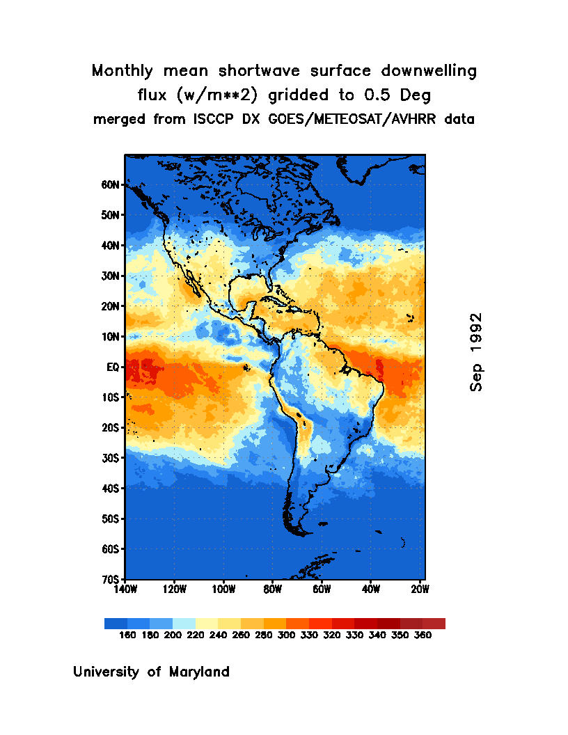 Monthly Mean Shortwave Surface Downward Flux (Wm