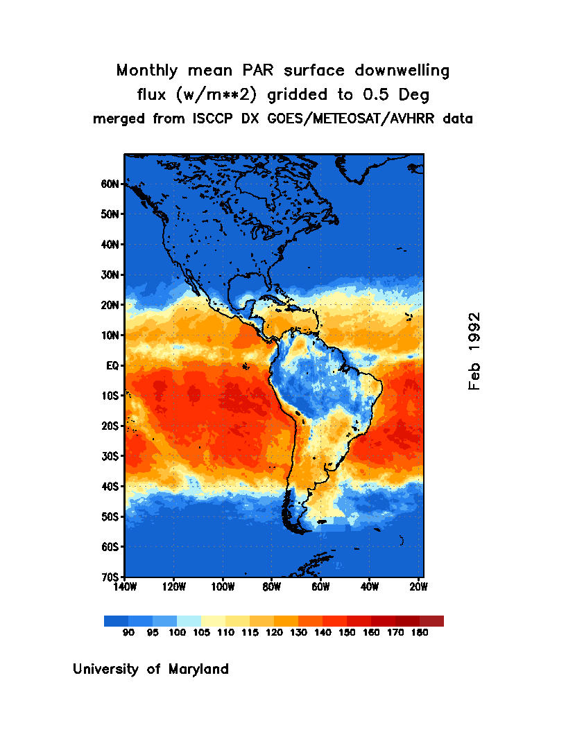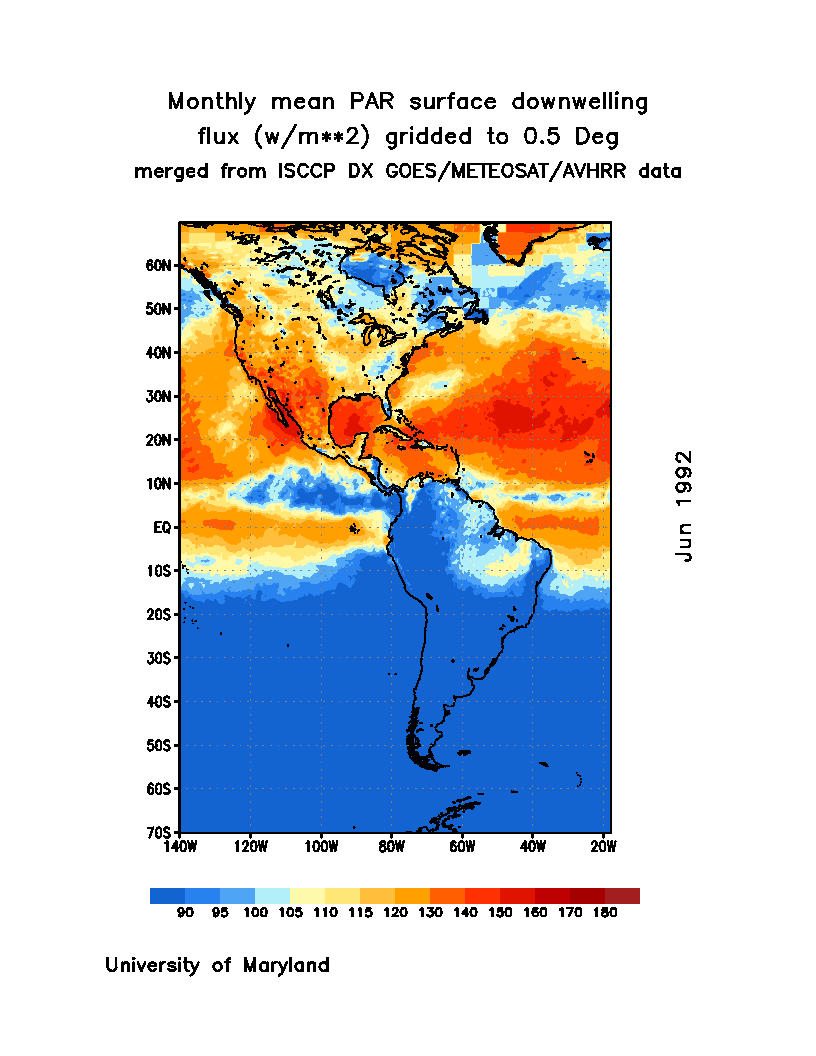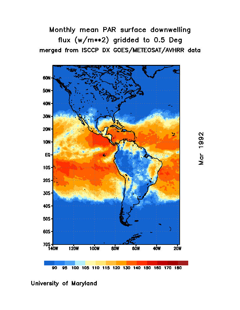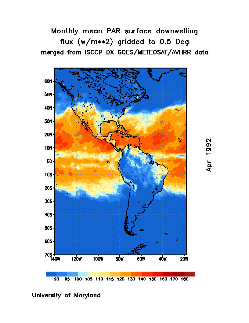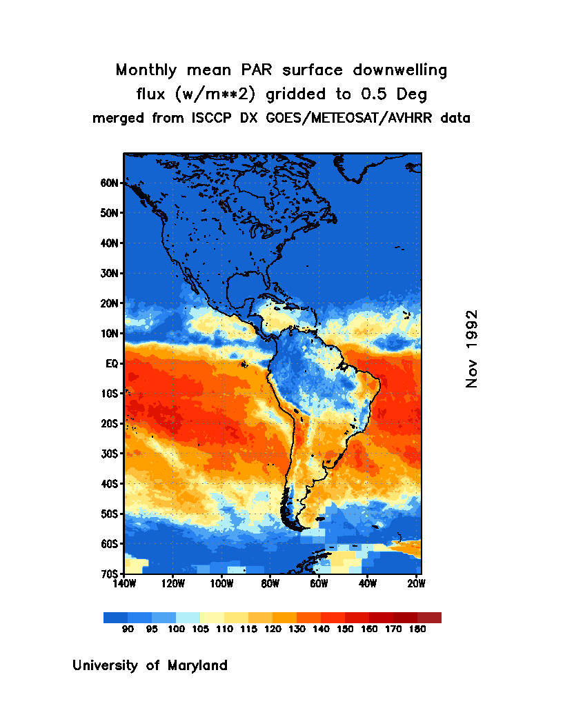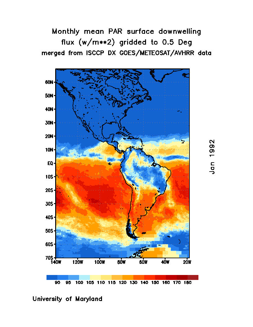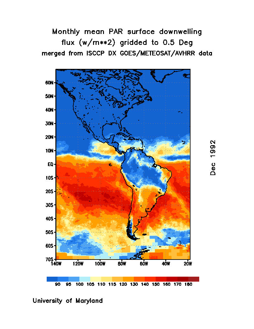 Monthly Mean PAR Surface Downward Flux (Wm-2)