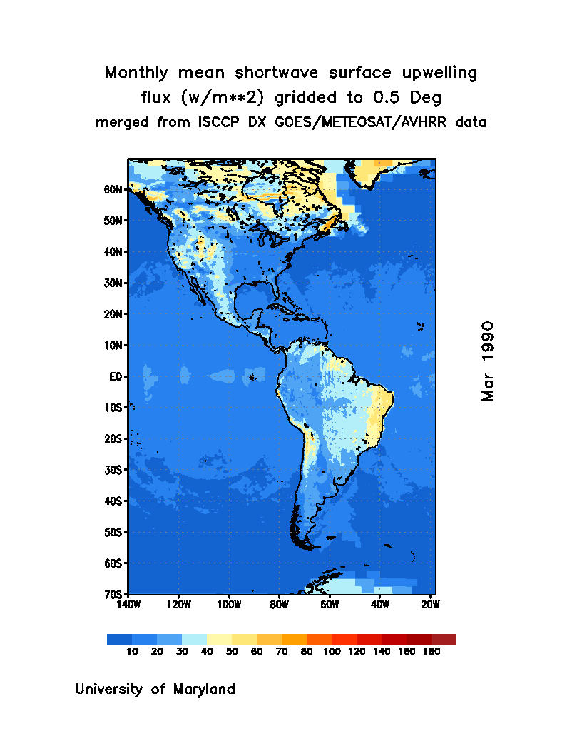 Monthly Mean Shortwave Surface Upward Flux (Wm