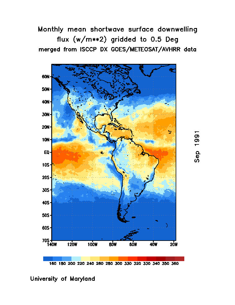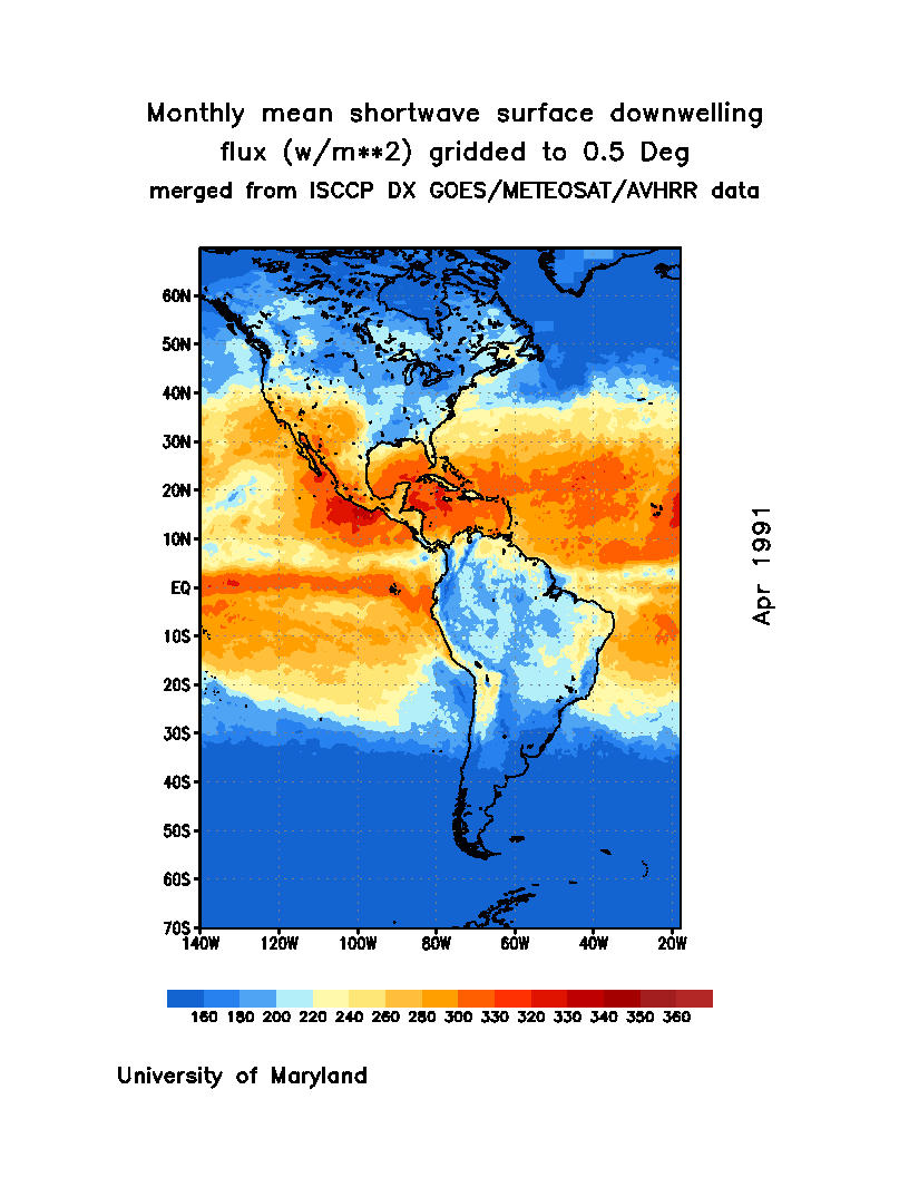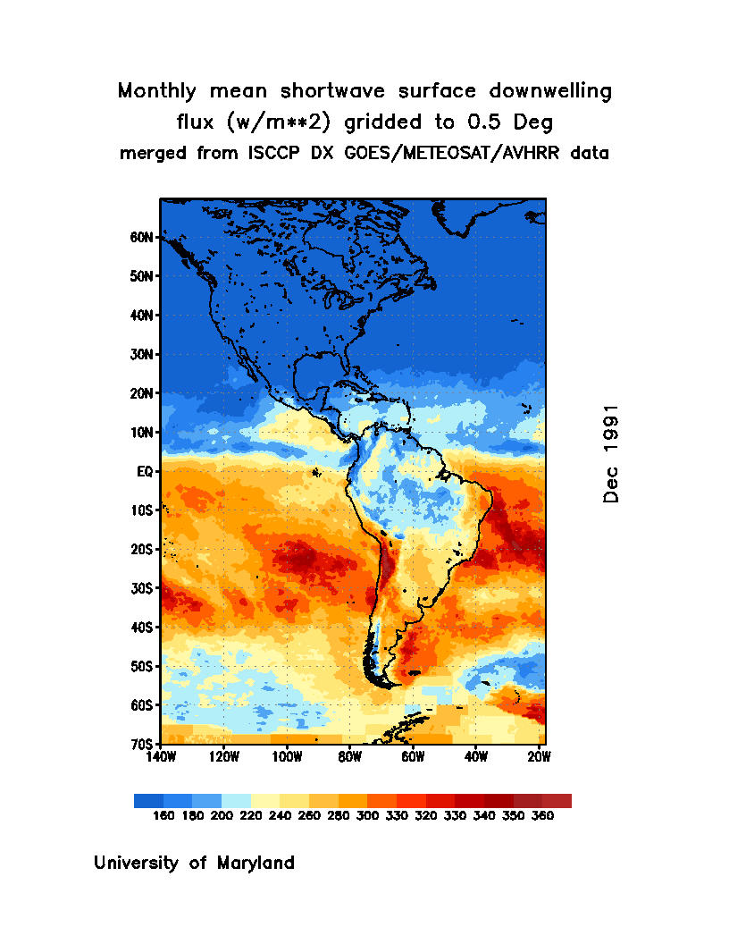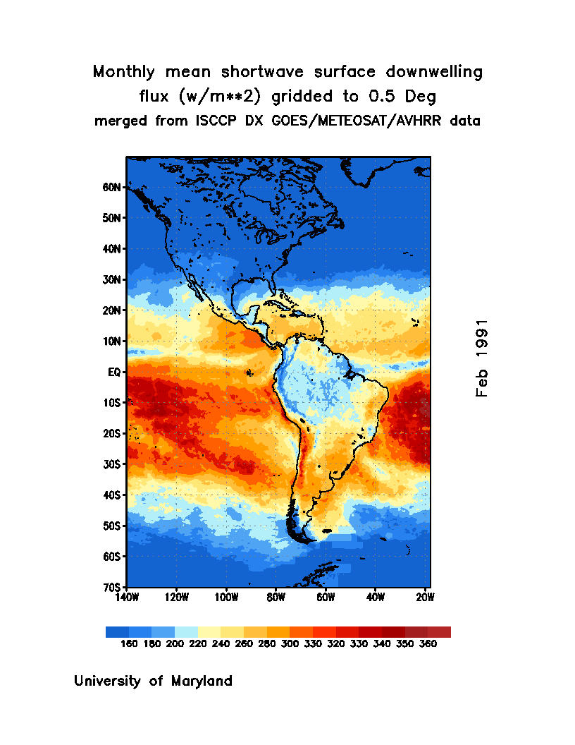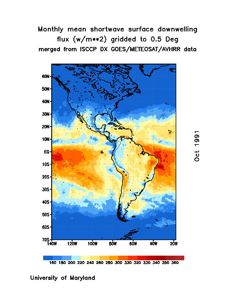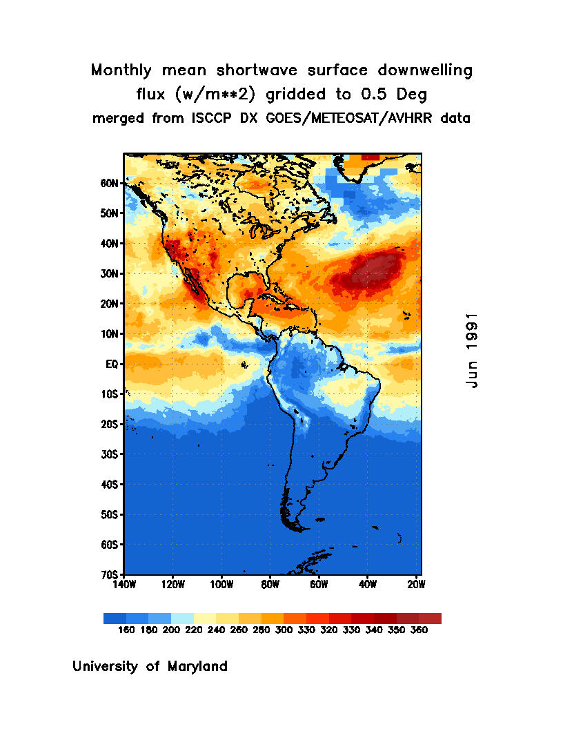 Monthly Mean Shortwave Surface Downward Flux (Wm-2)
